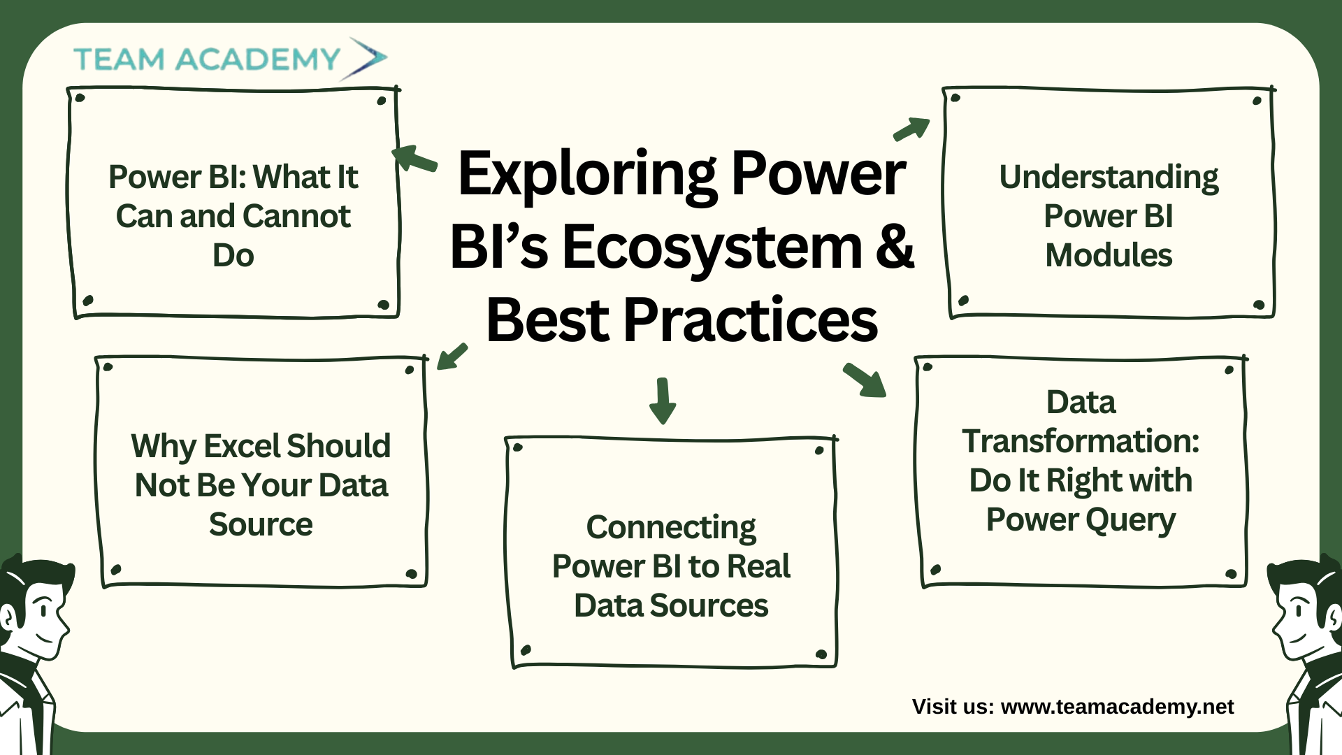 A key takeaway from the session was understanding where Power BI fits in the data ecosystem. Power BI is a powerful visualization and analytics tool, not a data warehouse