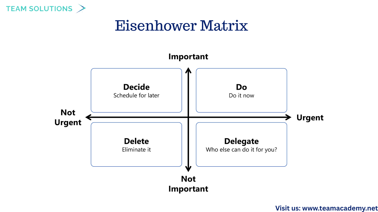 โณ Eisenhower Matrix for prioritizing urgent vs important tasks