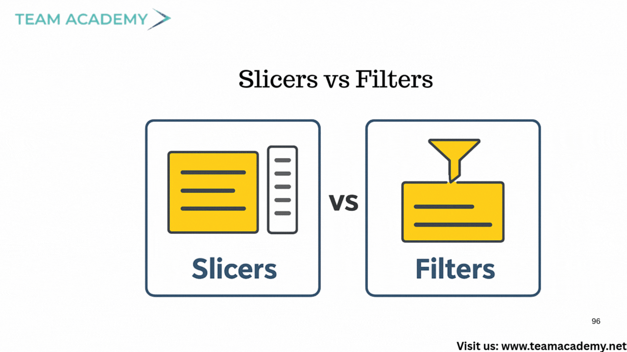 A major portion of the session focused on slicers, a critical element for interactive dashboards. Participants explored: