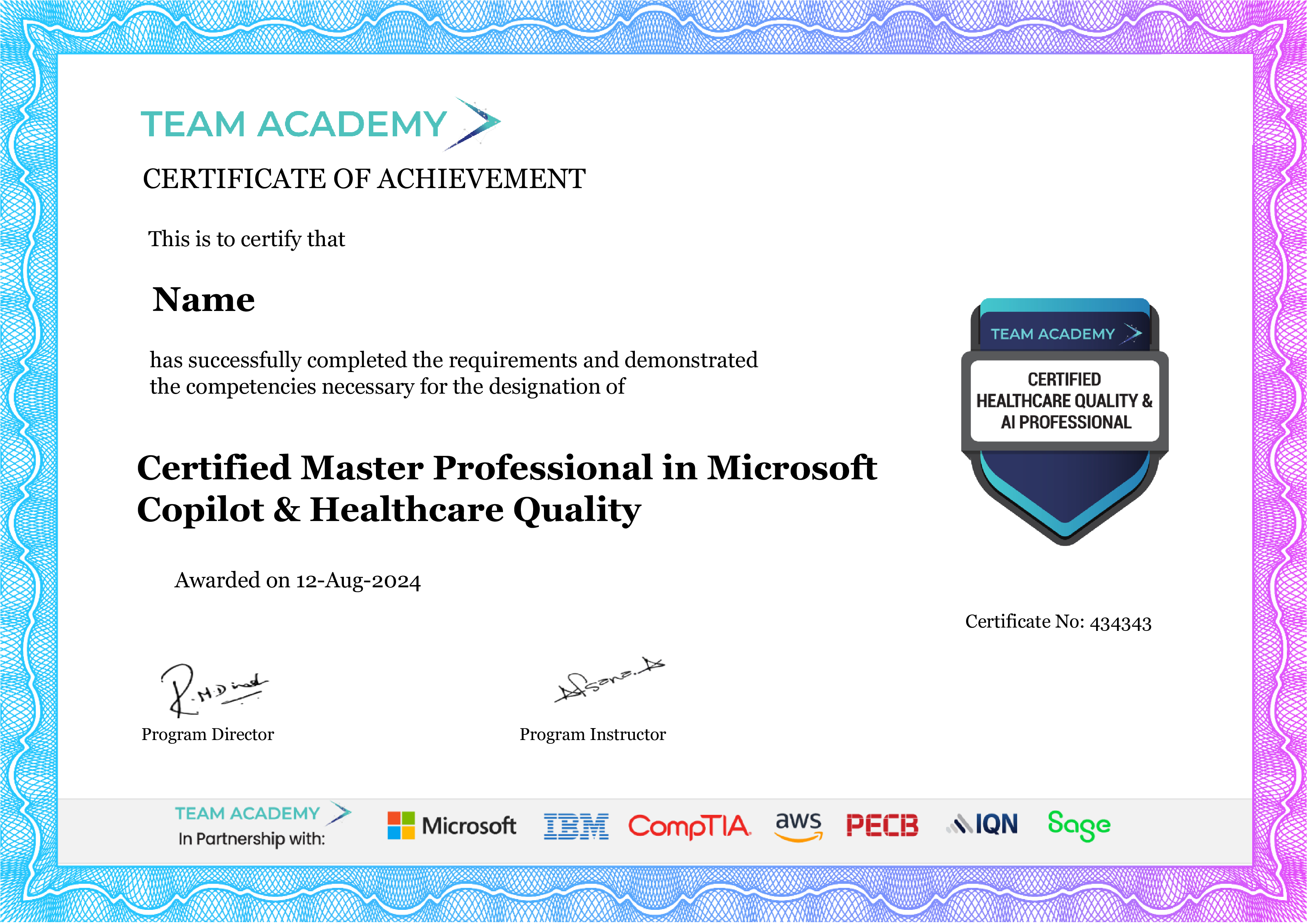 The CPHQ and Copilot Master Program prepares healthcare professionals to excel in both quality management and AI-powered efficiency. This forward-thinking program combines the globally recognized Certified Professional in Healthcare Quality (CPHQ) framework with Microsoft Copilot, empowering learners to manage quality systems while embracing digital transformation.