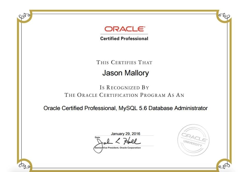 Certification: Oracle Certified Professional: MySQL Database Administrator