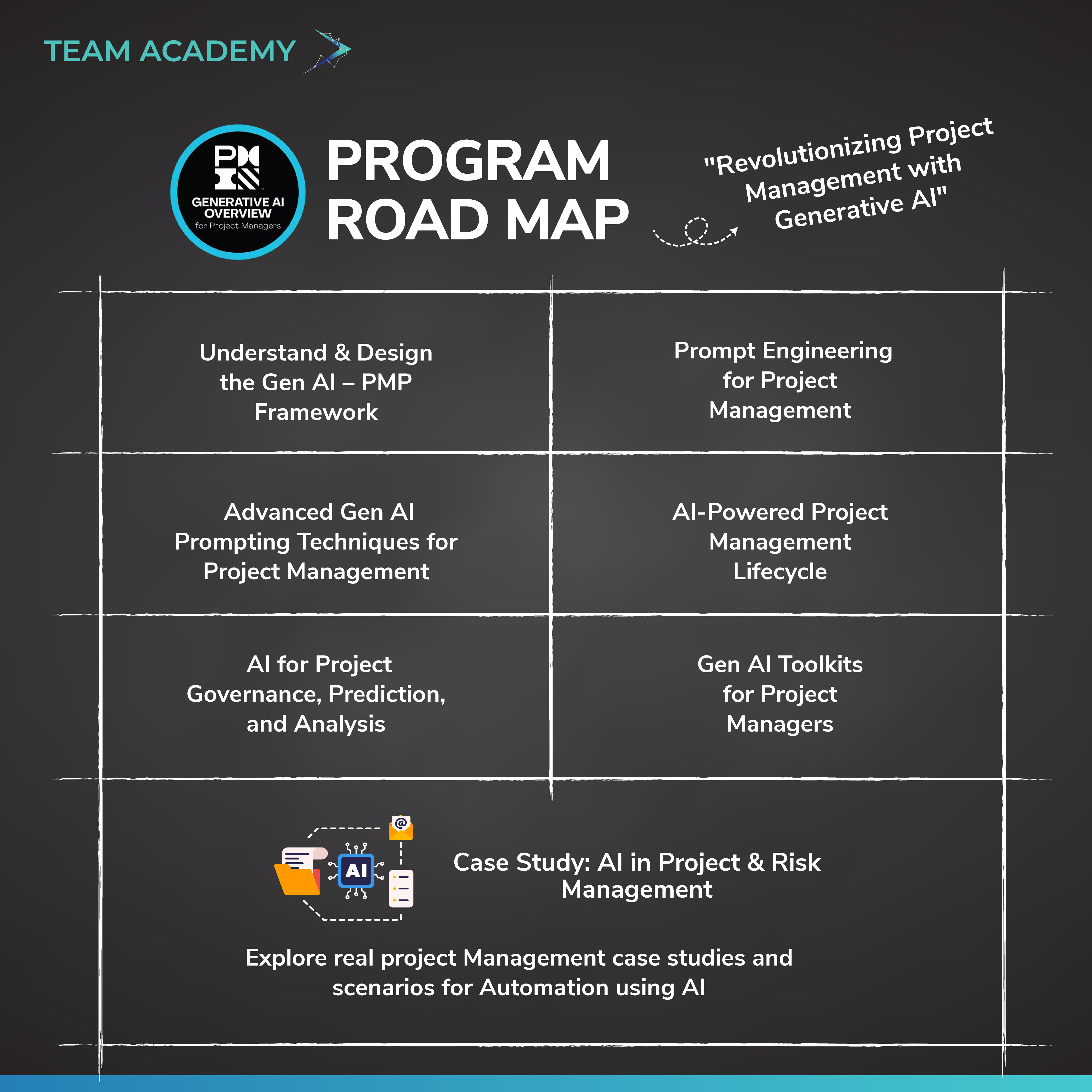 This program offers a practical, hands-on approach to using AI tools in project management. You will master essential skills such as crafting AI prompts, developing custom AI models, and applying AI to streamline planning, scheduling, and risk management. Learn how to build code-free chatbots, enhance reporting, and improve communication. Through real-world examples and case studies, this course simplifies AI integration into project workflows, making your project management tasks more efficient and effective.