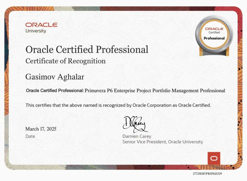 Certification :Oracle Primavera P6 Professional (OCP)